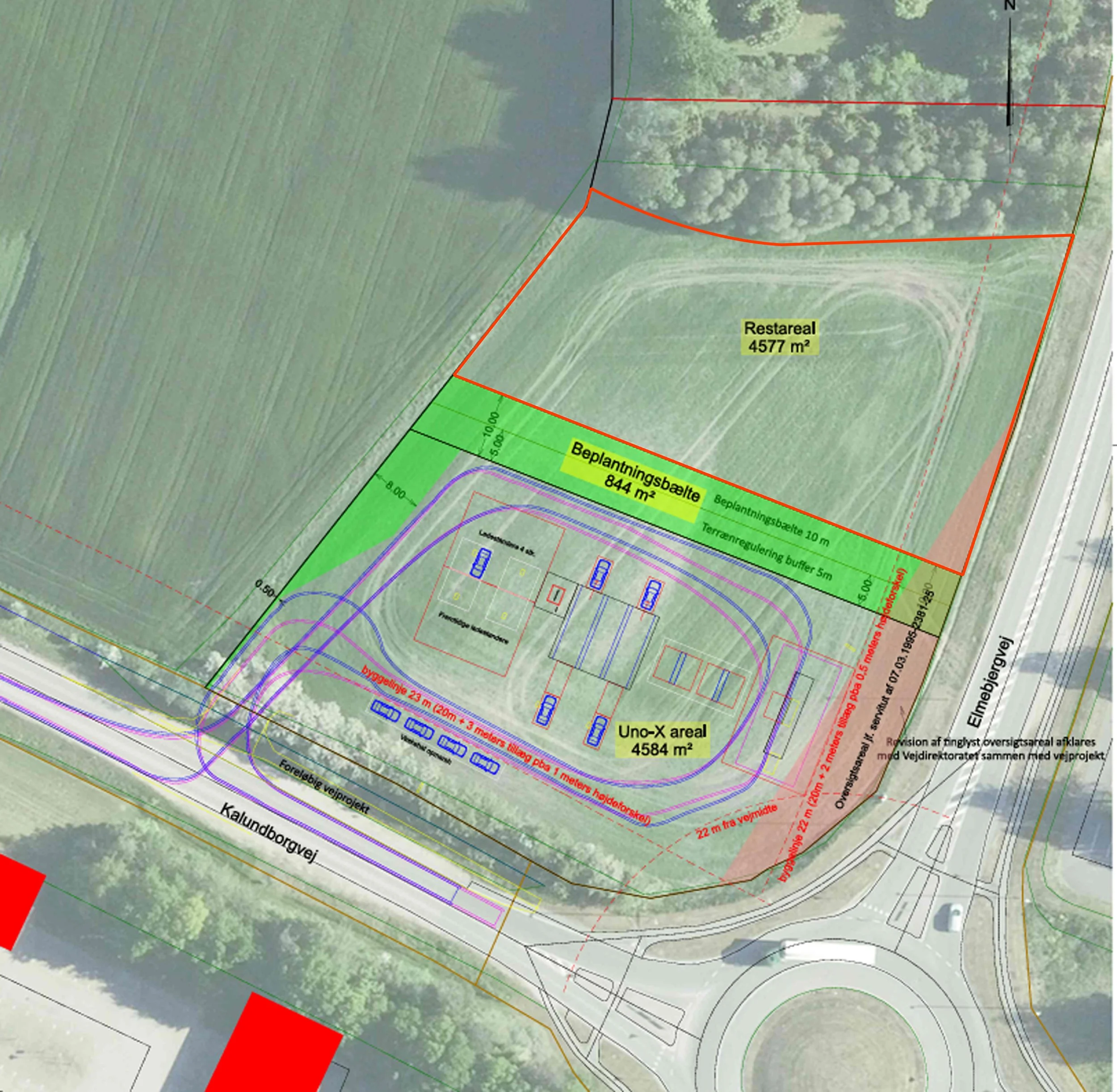 4500 m2 jord til kommende muligt projekt (markeret i rødt).
